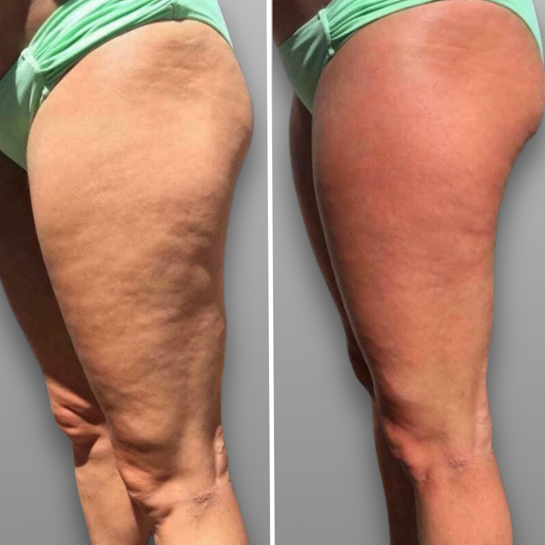După tratament, coapsele mele arată mai subțiri și pielea e mai fermă. Mă simt excelent.